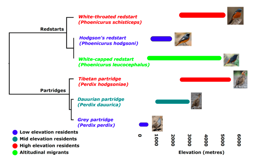 One of the key questions in evolutionary biology is to understand how an organism responds to a novel environment. Two major evolutionary processes that allow organisms to adapt to a novel environment are (1) phenotypic plasticity and (2) genetic adaptation. These two are mostly studied as separate independent processes, and the possible synergistic effects of these two processes in facilitating or hindering adaptation have received less attention. We are studying multiple species of birds residing across the steep elevational gradient of the Himalayas, and quantify a suite of physiological traits that show plastic and adaptive response associated with changes in atmospheric oxygen levels across elevation.